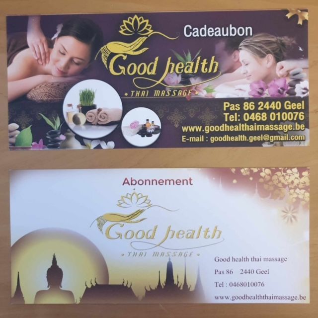 Bij Good health Thai Massage hebben we een team van professionele massagetherapeuten verzameld om u kwalitatief hoogstaande Thaise massage te kunnen bieden. Onze behandelingen variëren van oil relax smassage, deep tissue massage, Thaise oliemassage, hot stone massage, kruidenstempelmassage, hoofd-, nek- en schoudermassage, voetmassage, kindermassage (3-12 jaar) en zwangerschapsmassage.Ook bieden we Duo-massages aan. Onze service strekt zich uit over Geel en omstreken. We accepteren betalingen met cash en Payconiq. Ons team staat klaar om u te helpen. Neem contact met ons op voor meer informatie.